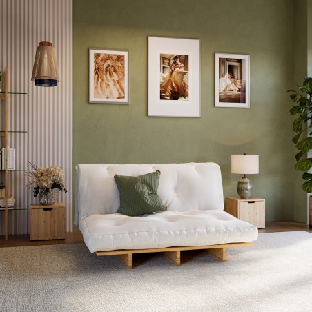 Canapé lit 100% nature, bois brut massif et matelas futon